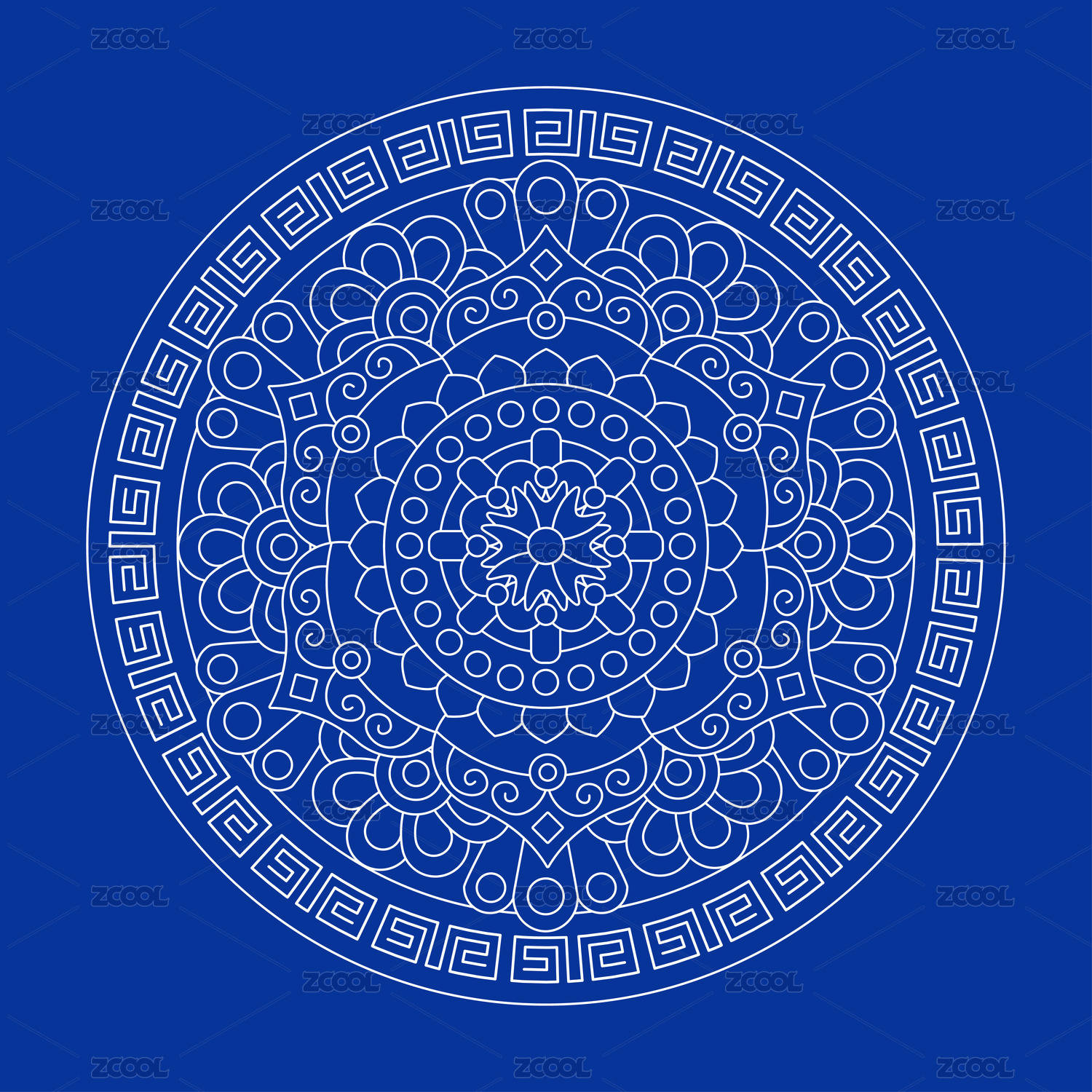 蓝色传统线条花纹,白色背景
