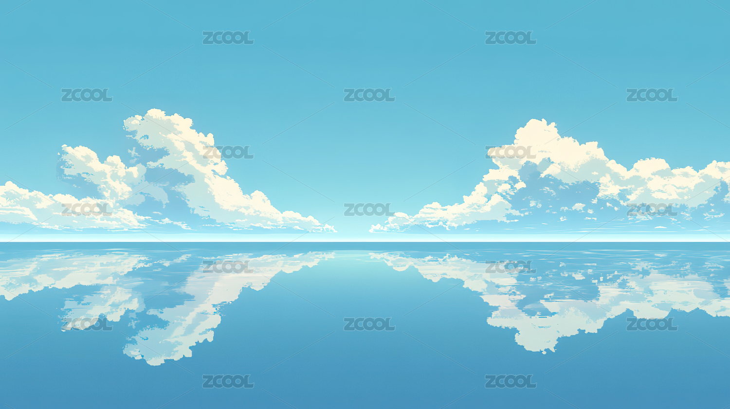 蓝天白云水面倒影