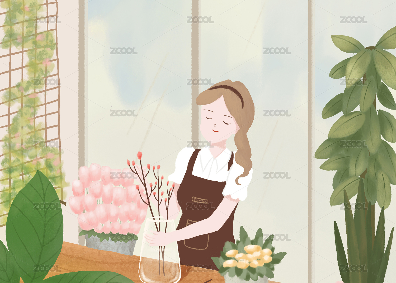 花店,鲜花,冬天,下雪,雪花,室内,温室,温暖,花朵,店员