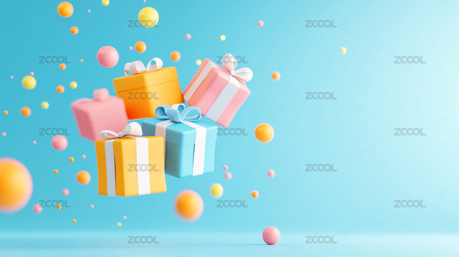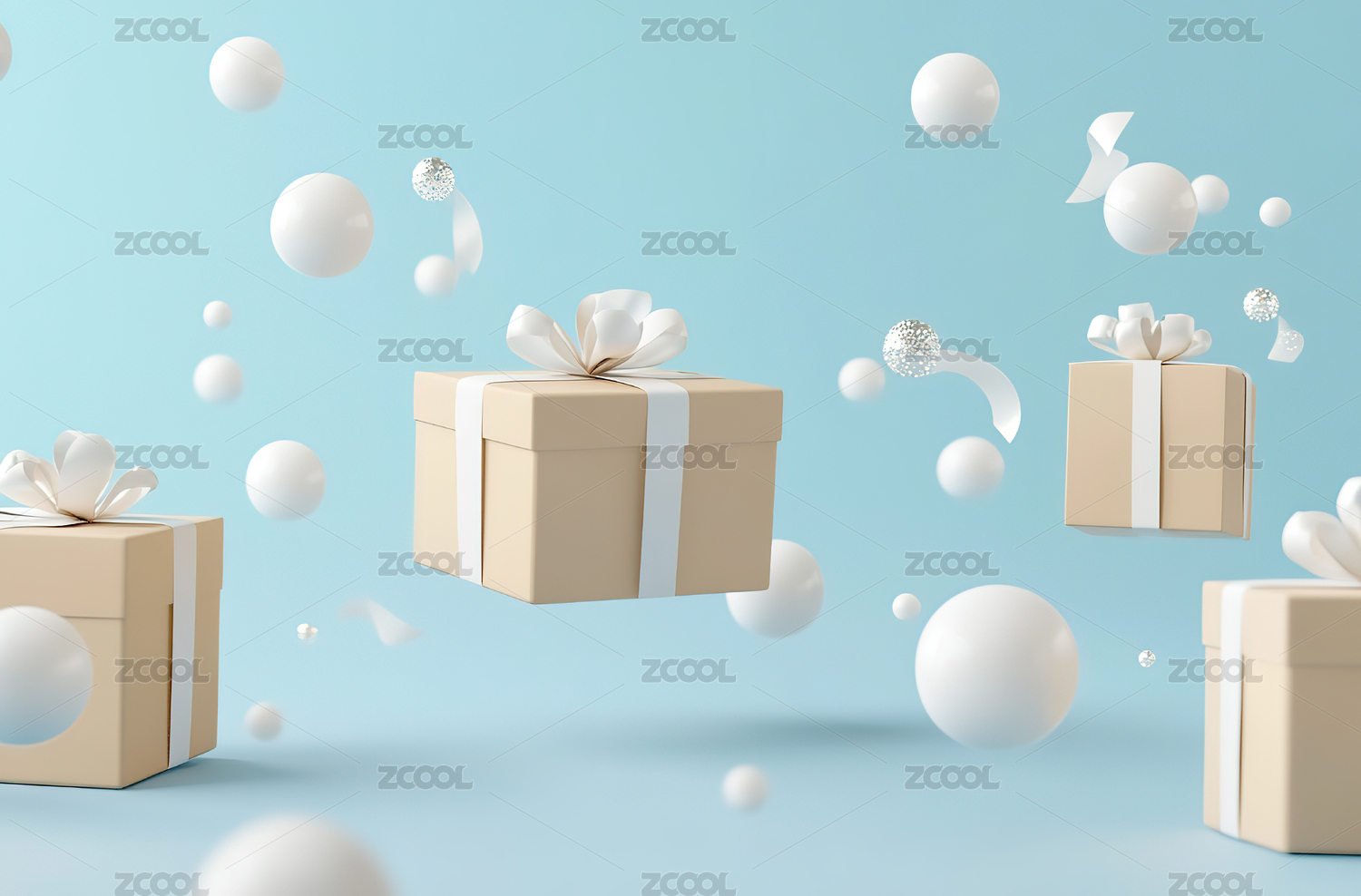 DXCZ202401,礼物盒,3D,蓝色,建模,漂浮,球体