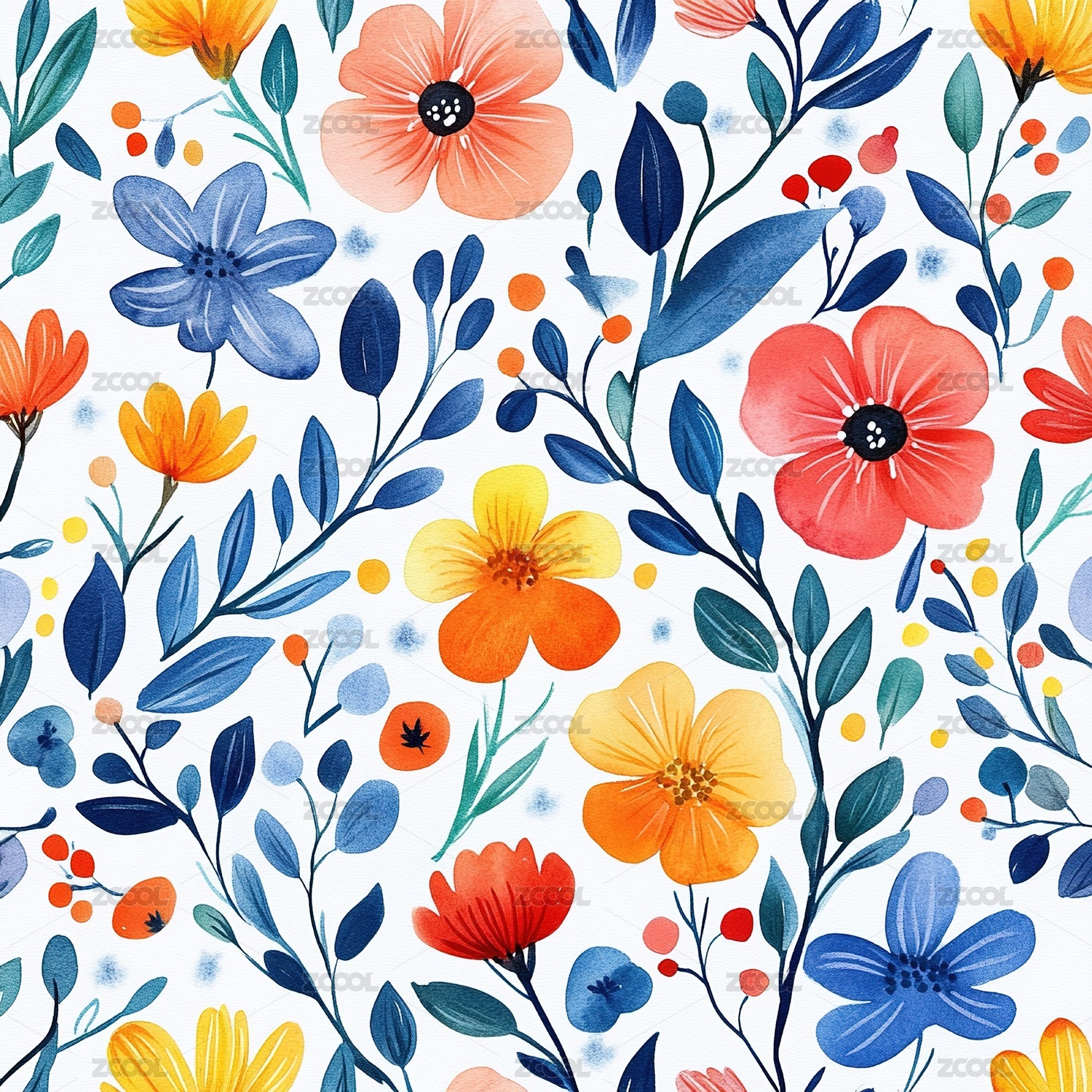 水彩连续花卉图案