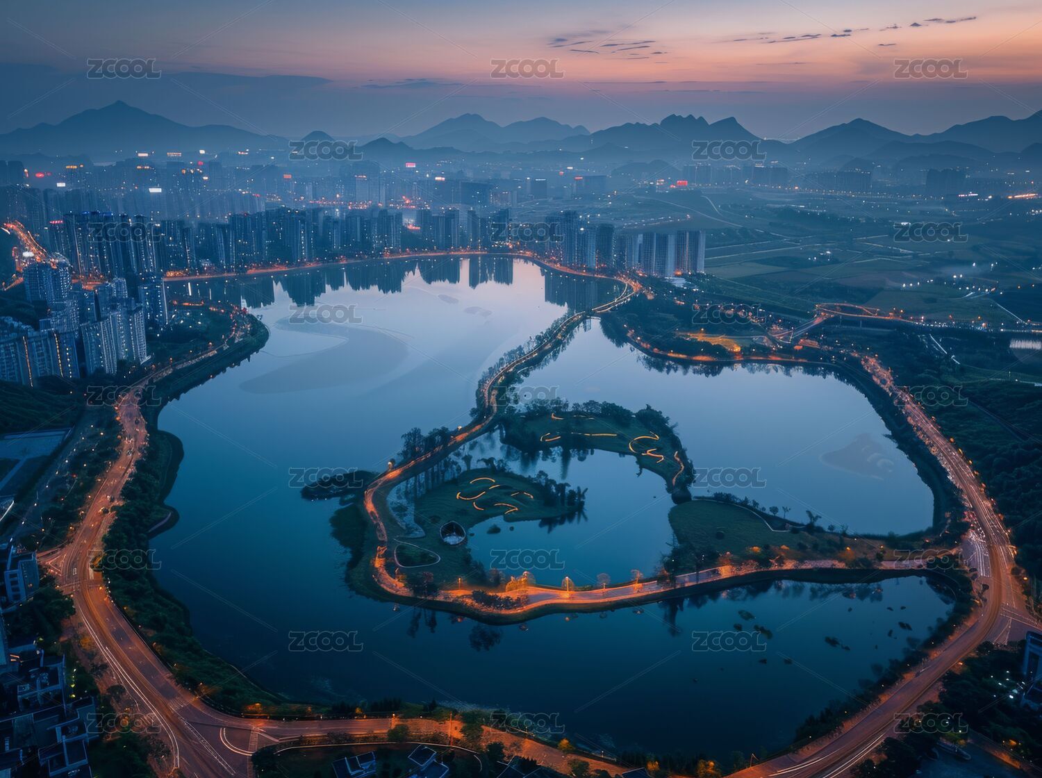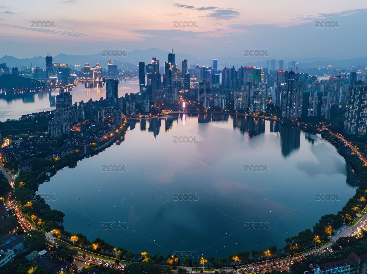 湖泊现代城市建筑大楼繁荣夜景高清广告海报