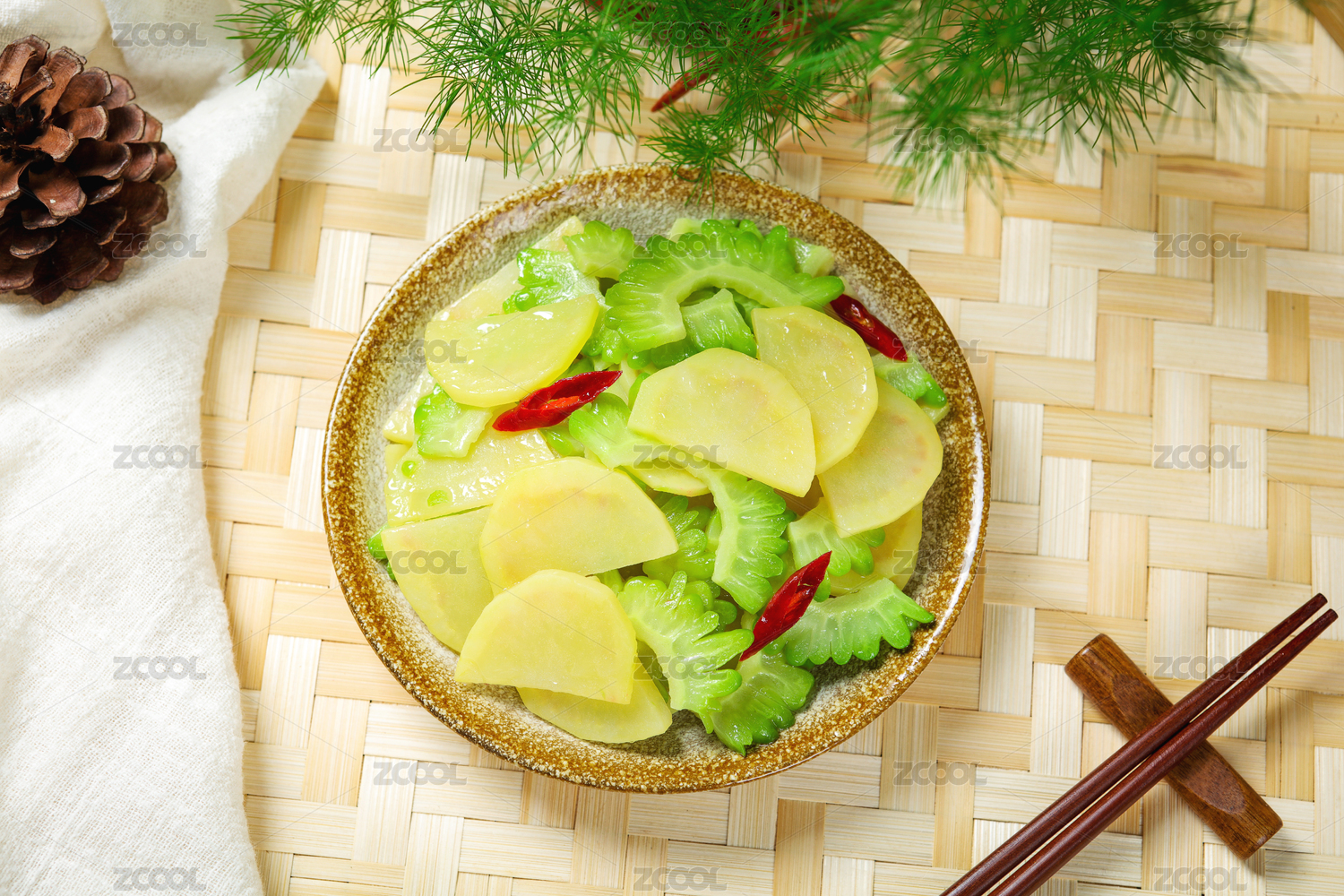 健康美食菜肴清炒苦瓜洋芋土豆片