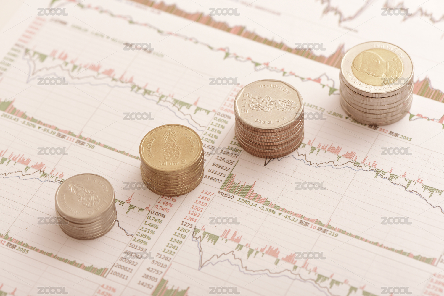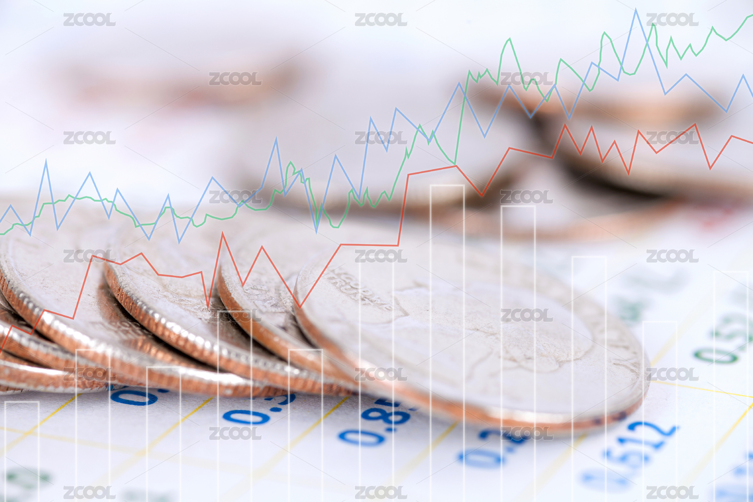 硬币堆砌堆叠投资理财金融图表报告大数据走势趋势