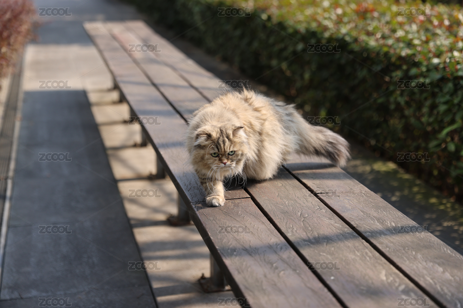 一只在公园长椅上行走的金吉拉