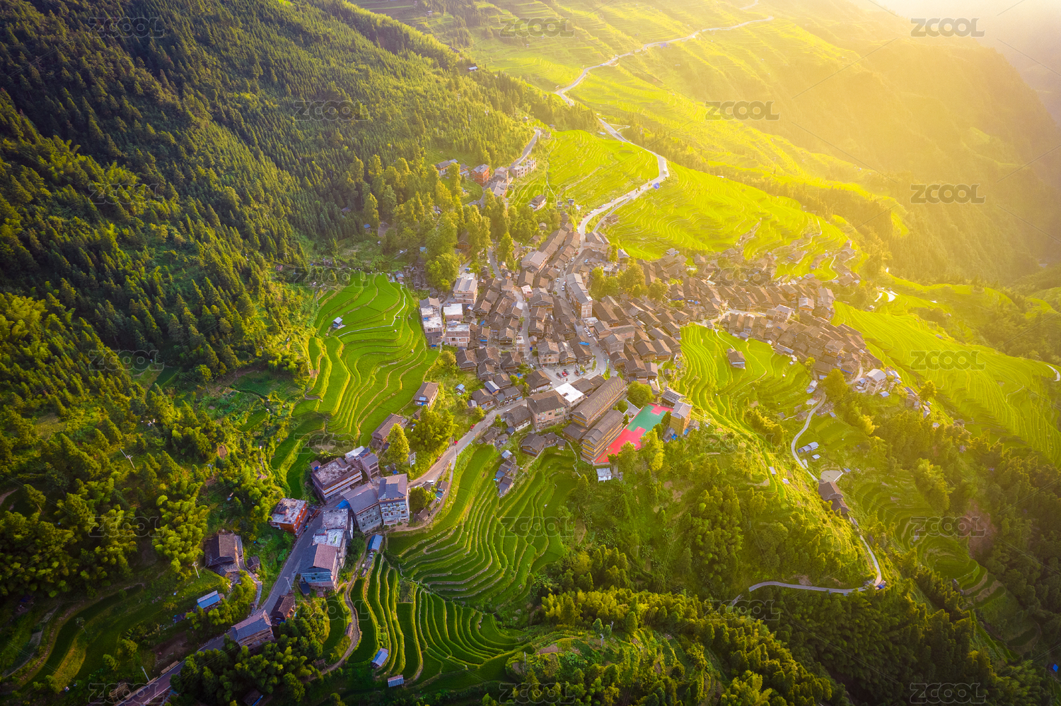航拍梯田与乡村