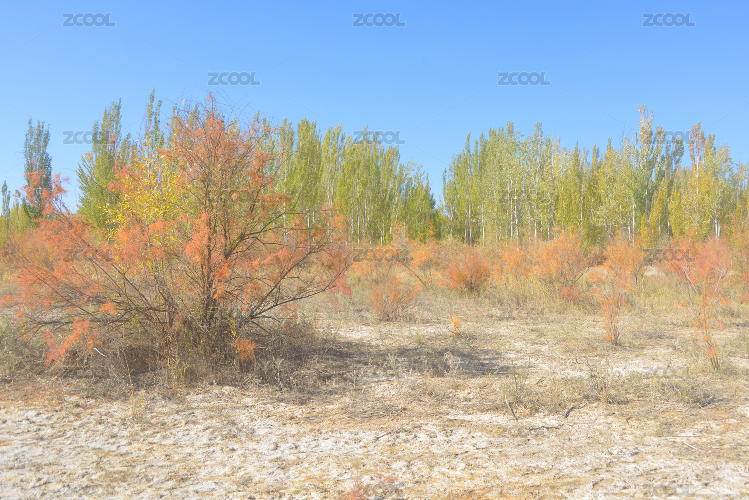 甘肃金塔县湖岸防护林 白桦林和红柳丛