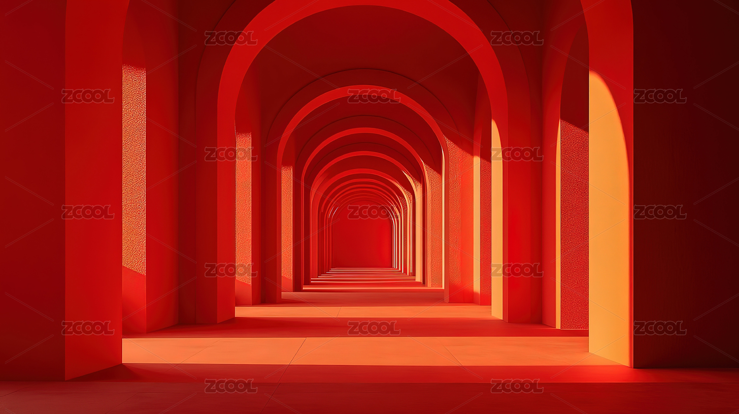 红色背景下的红色走廊