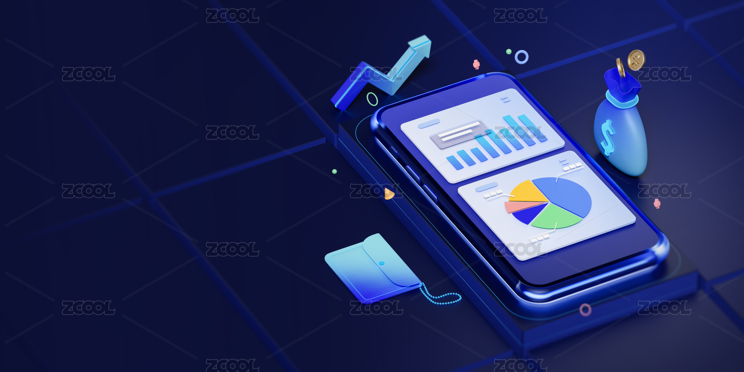 3D渲染手机在线金融理财主题插画