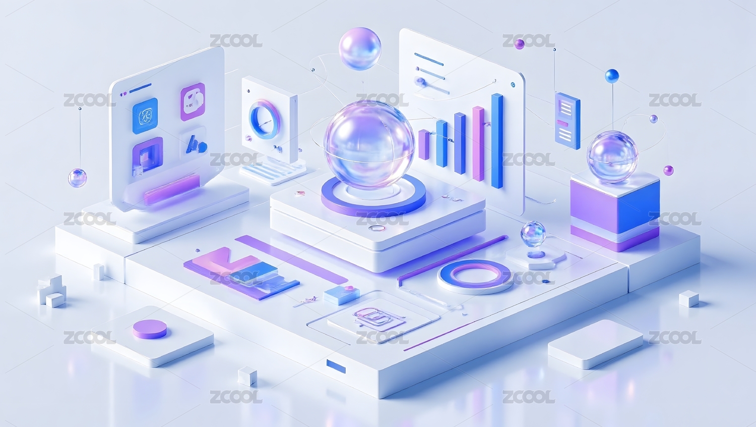 互联网微光渐变科技风格2.5D矢量插画