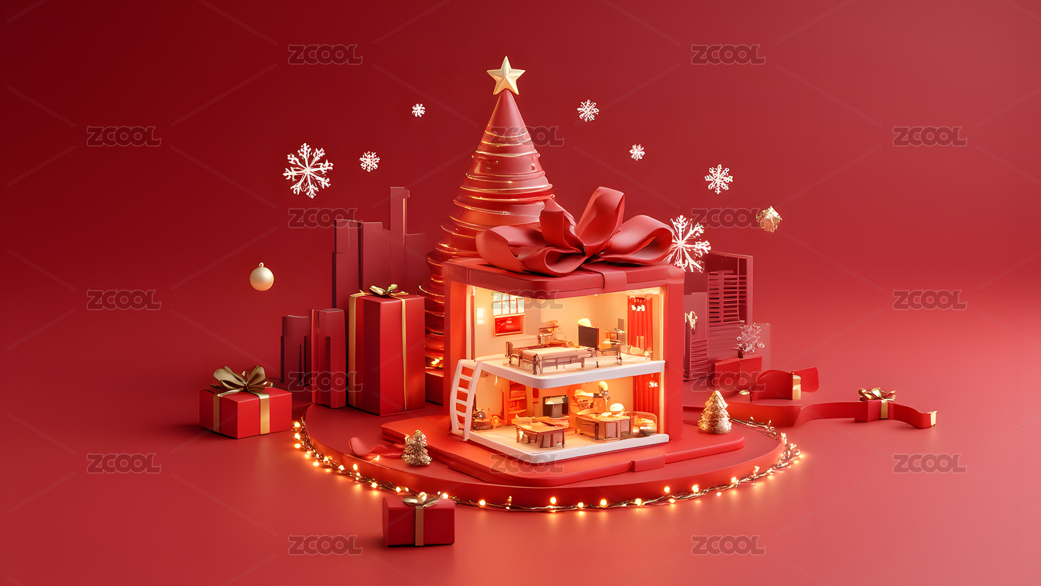 红色背景下的节日装饰
