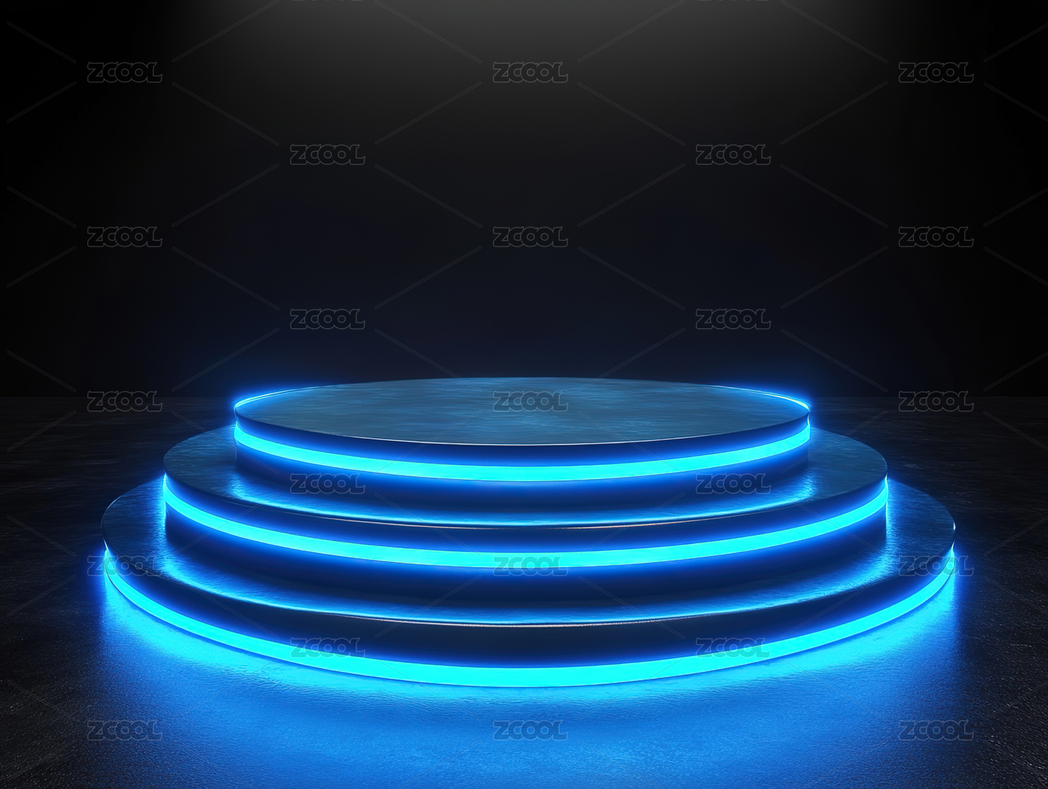 黑暗空间里发光的蓝色圆形展台