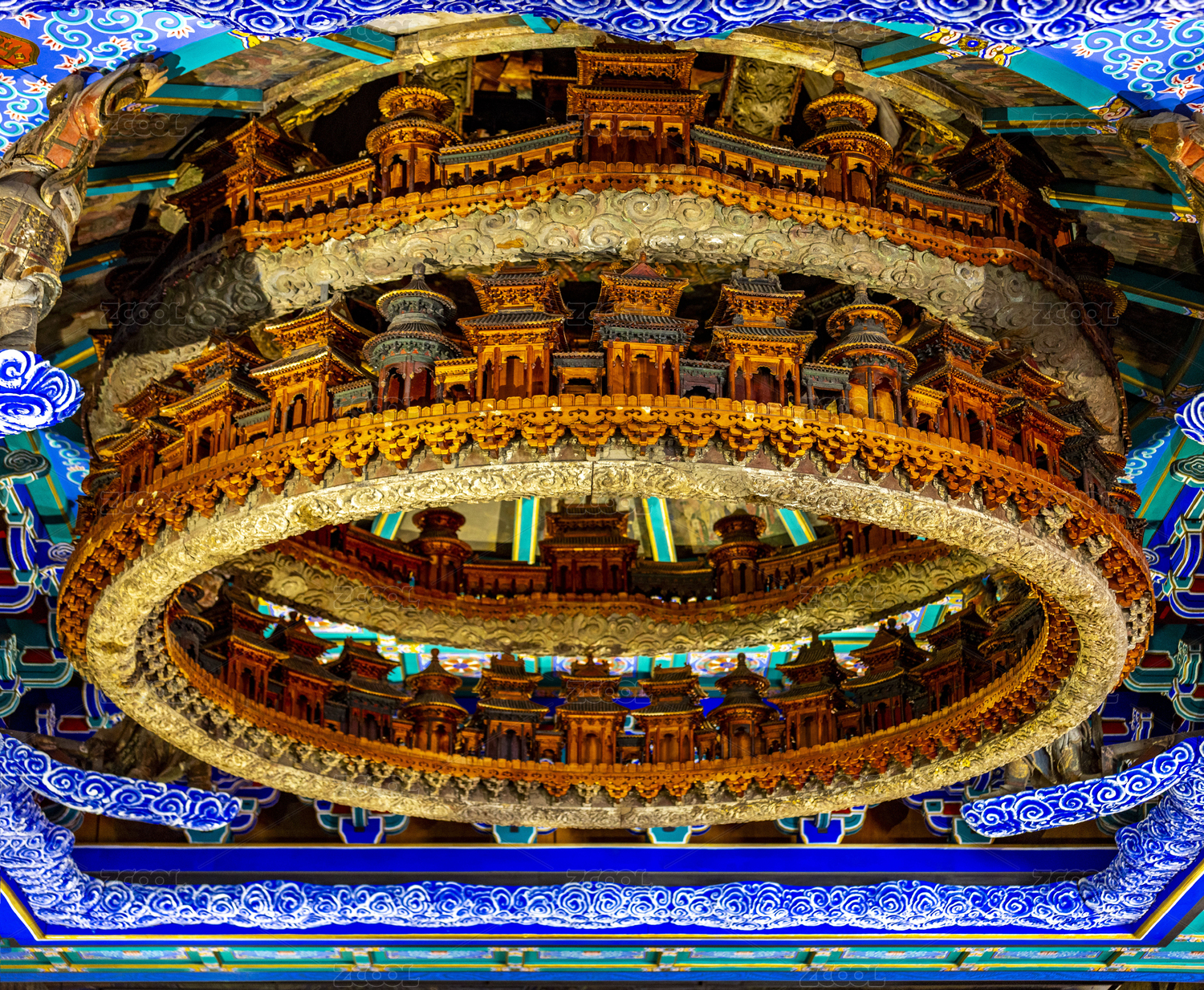 北京古代建筑博物馆精美雕花穹顶仰视视角