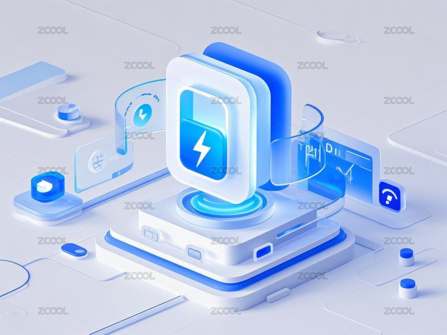 科技感蓝色闪电图标设计