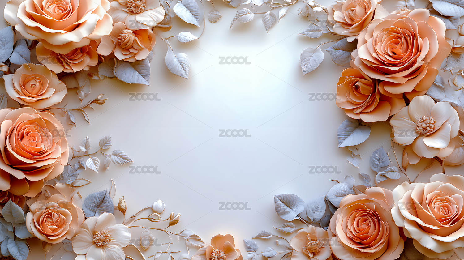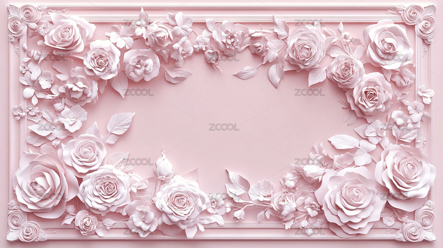淡雅纸雕立体玫瑰鲜花背景