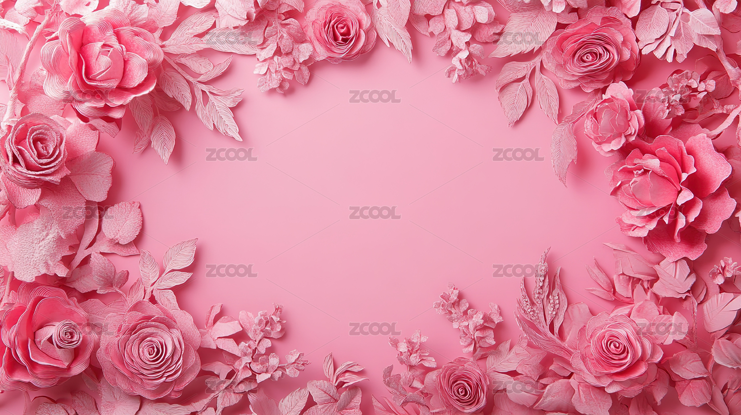 红色粉色边框鲜花花朵剪纸背景壁纸
