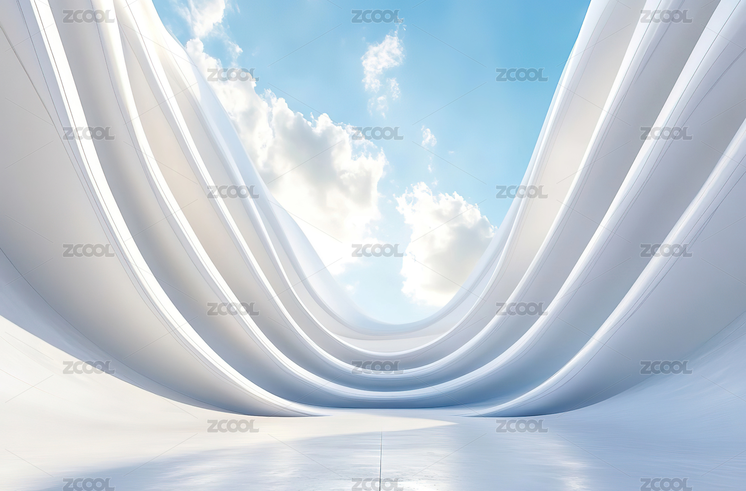 AI数字艺术,背景,抽象,设计,弯曲,现代,未来,建筑,科学技术,白色
