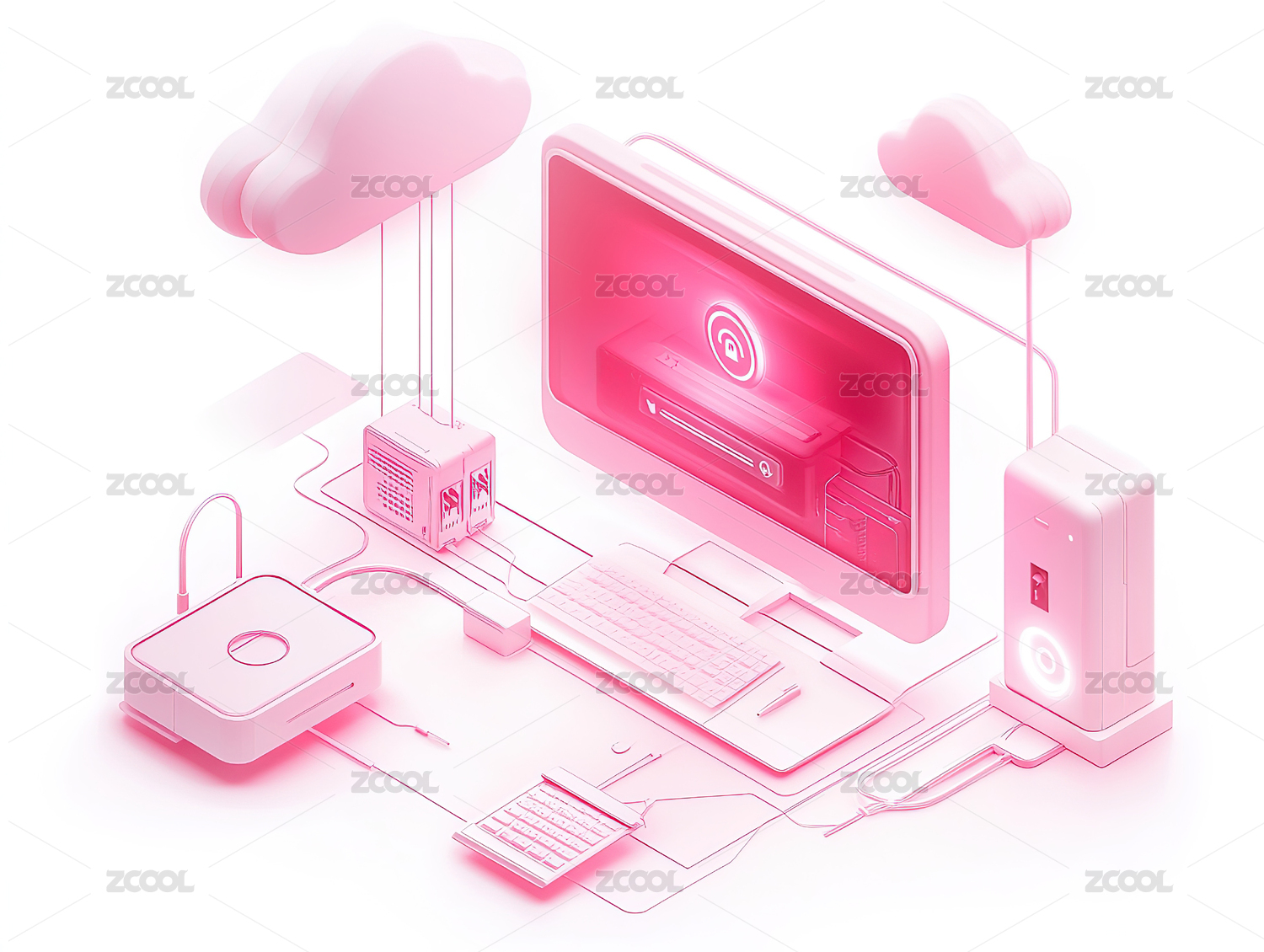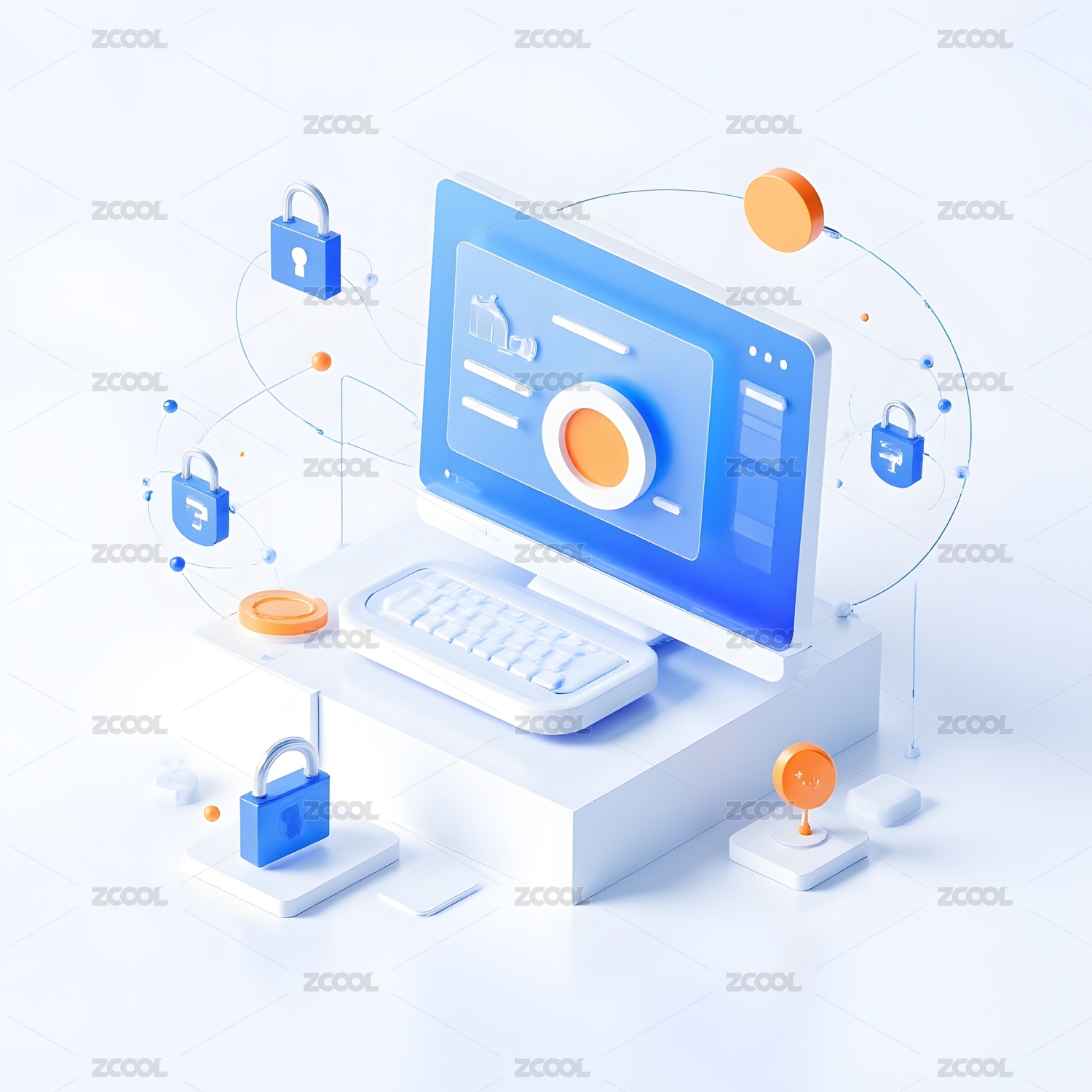 网络安全电脑科技插画