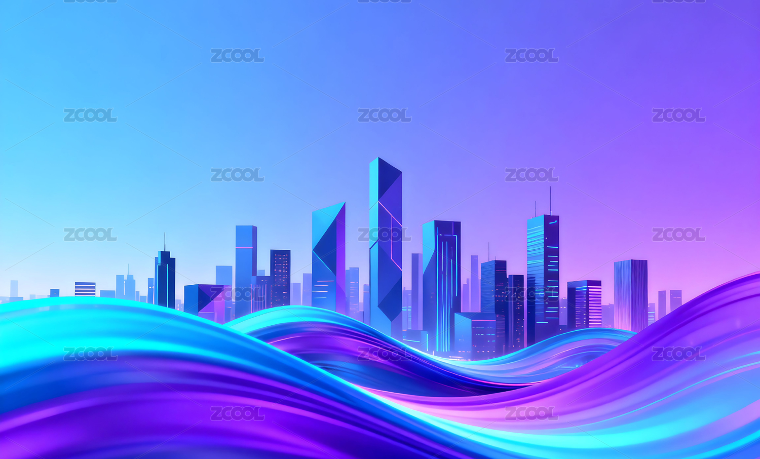 梦幻都市剪影与彩色波浪