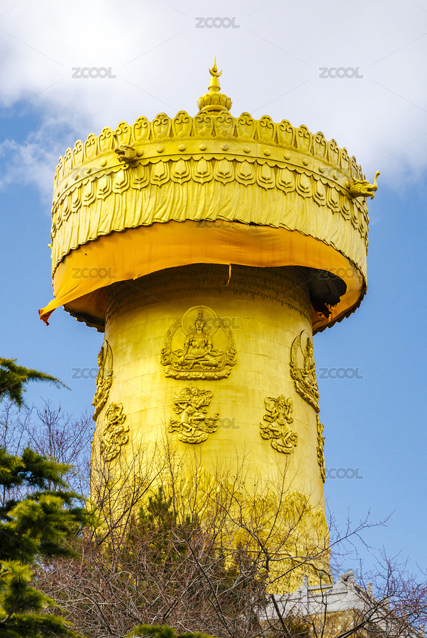 云南,香格里拉,龟山公园,转经筒,公园,浮雕,金色,造型,黄色,寺庙