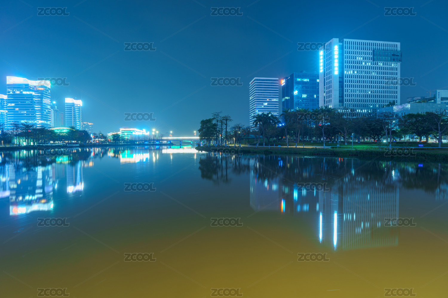 佛山千灯湖公园城市高楼建筑夜景灯光