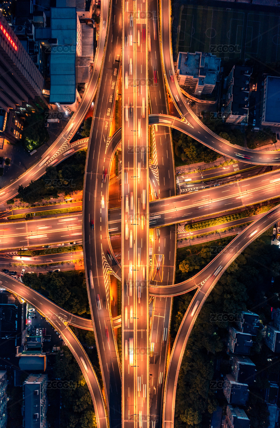 从高空俯视航拍夜晚的南京双桥门立交桥