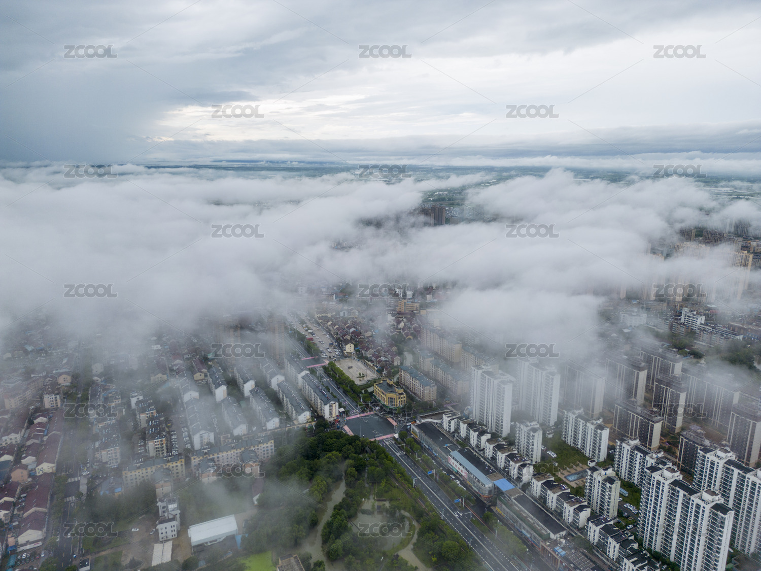 航拍中国安徽省宣城市郎溪县雨后云雾风光