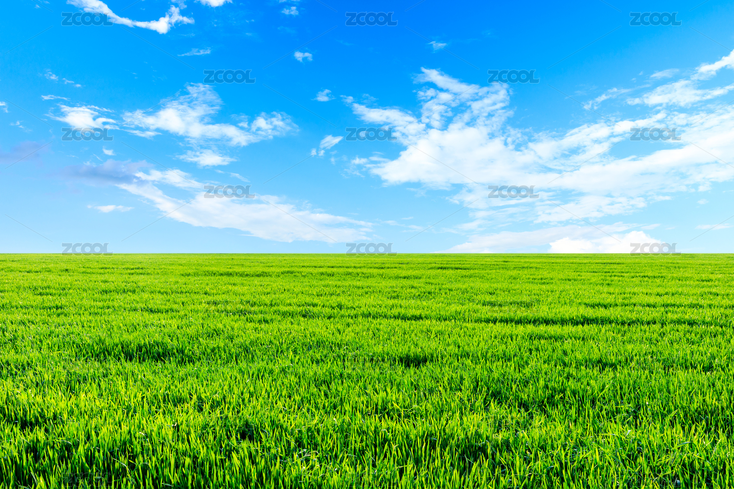 绿野蓝天白云景