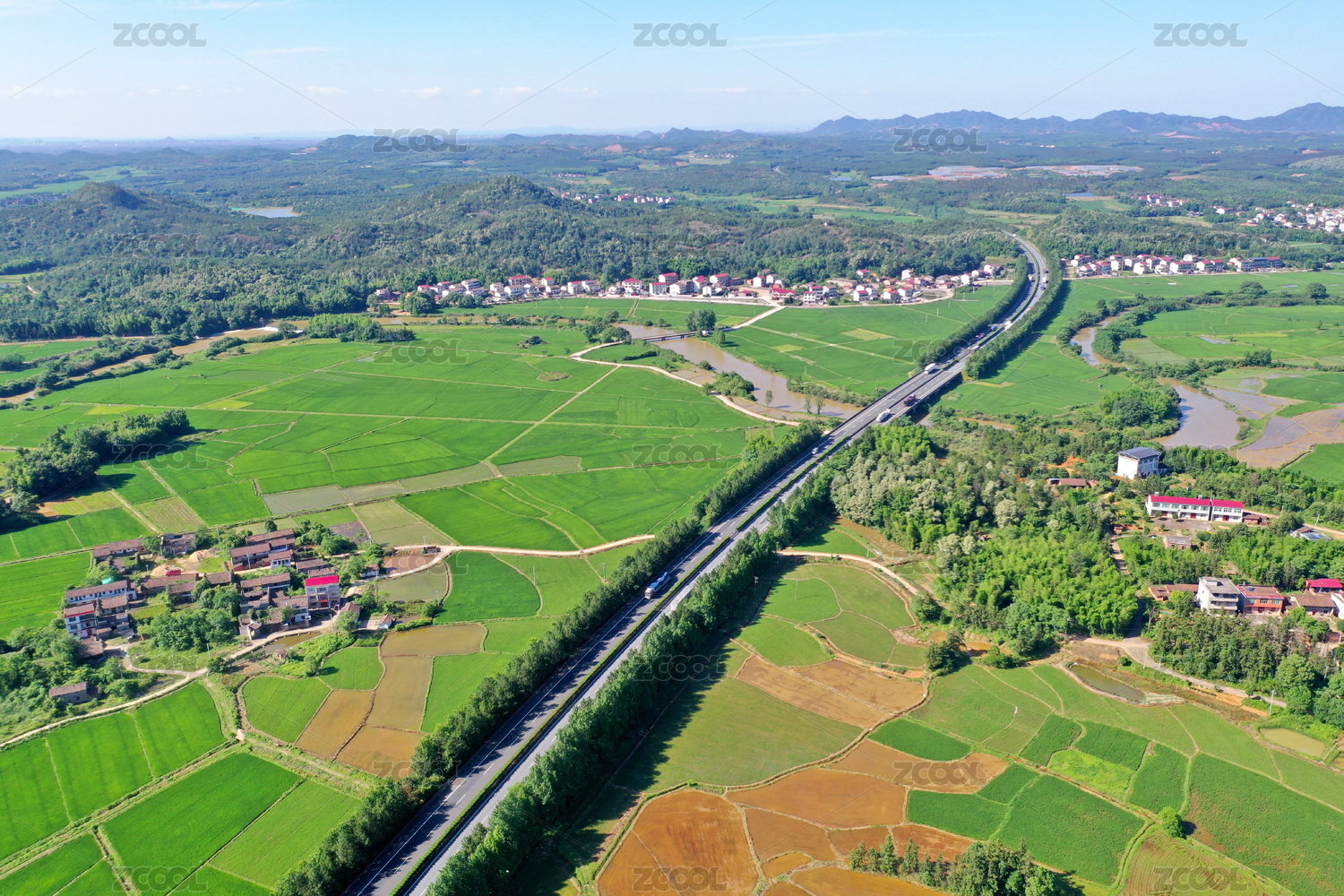 航拍乡村夏日麦熟时节田园风光及溧宁高速