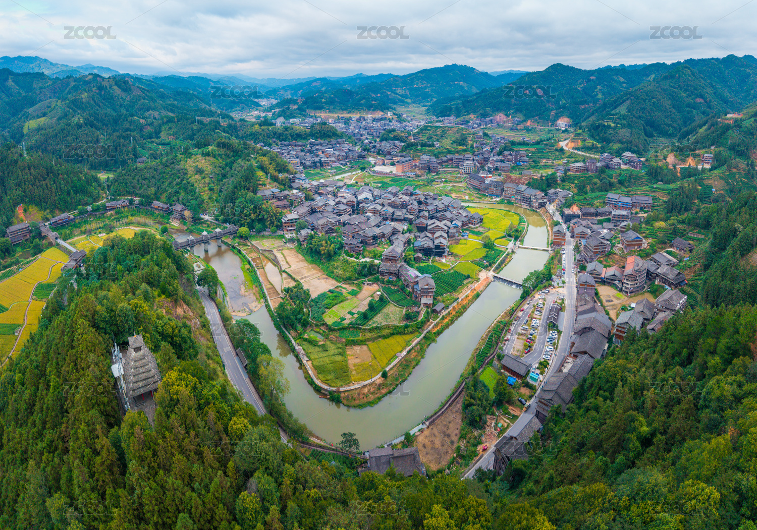 中国贵州黔东南州黎平县肇兴侗寨航拍