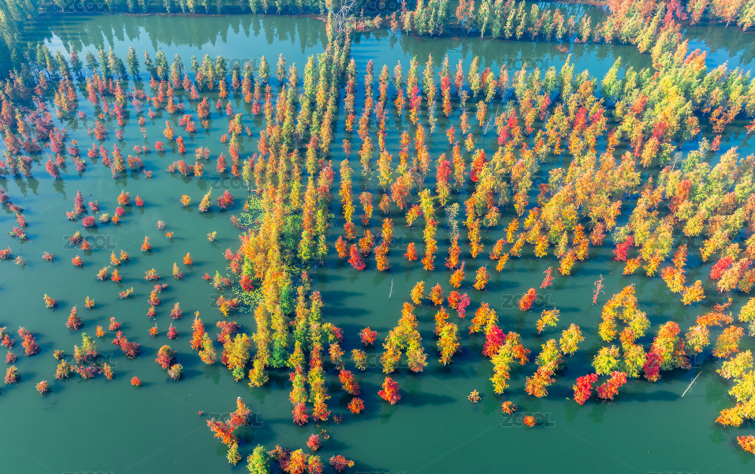 安徽省宣城市宁国落羽杉湿地公园红杉林秋色