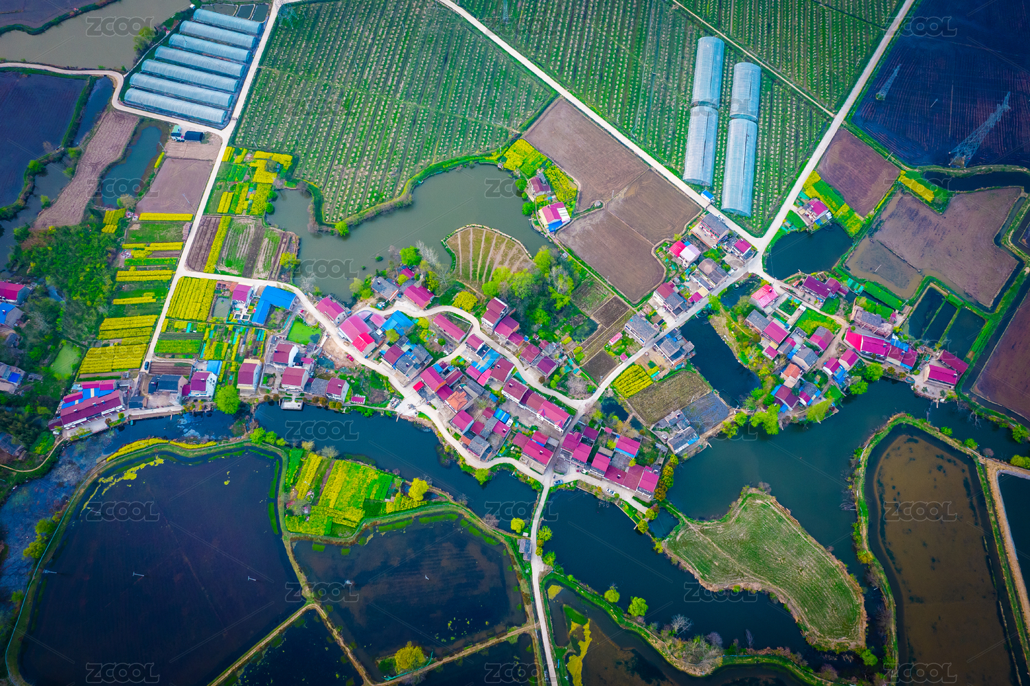 高视角,航拍视角,绿色,河流,小河,蜿蜒,田园,湿地,农业,农田