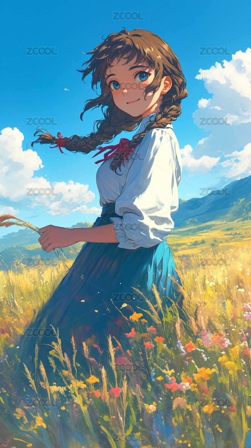 花田里的可爱女孩