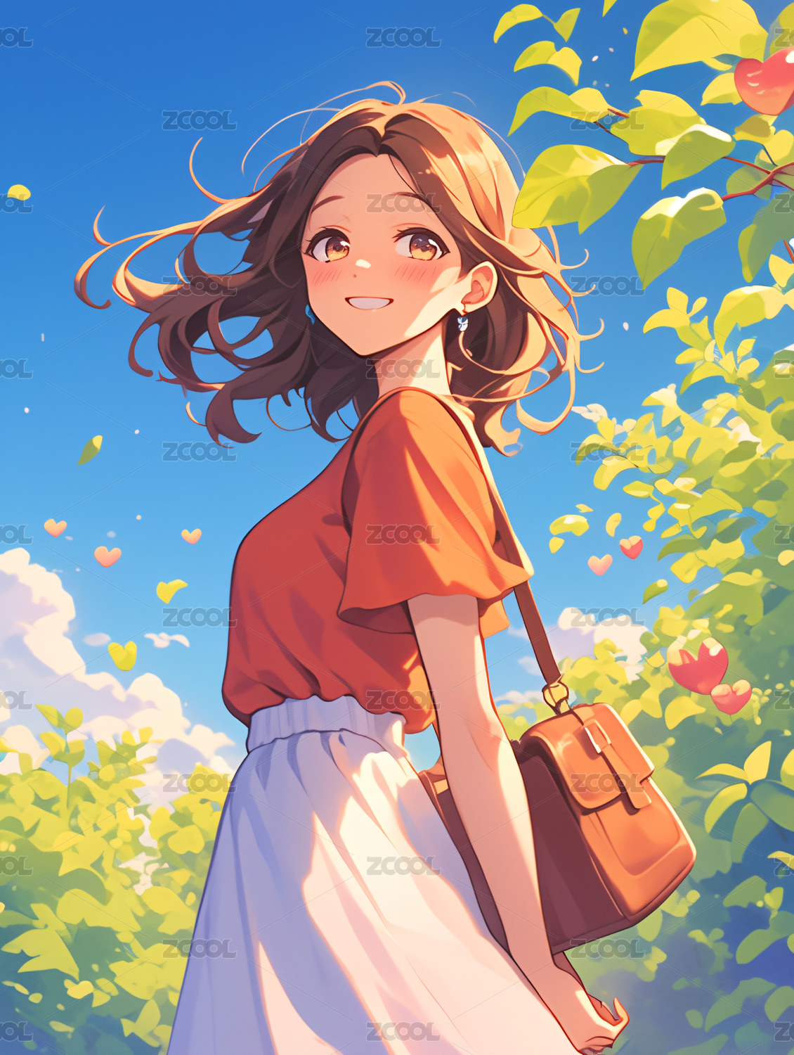 青春期女孩 山坡上眺望远方治愈插画