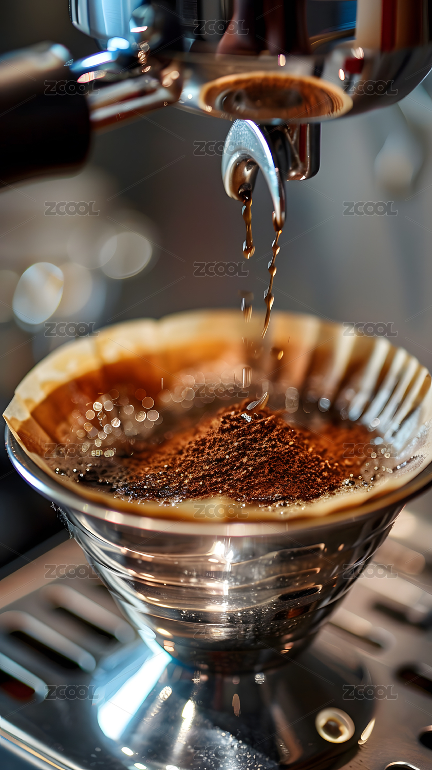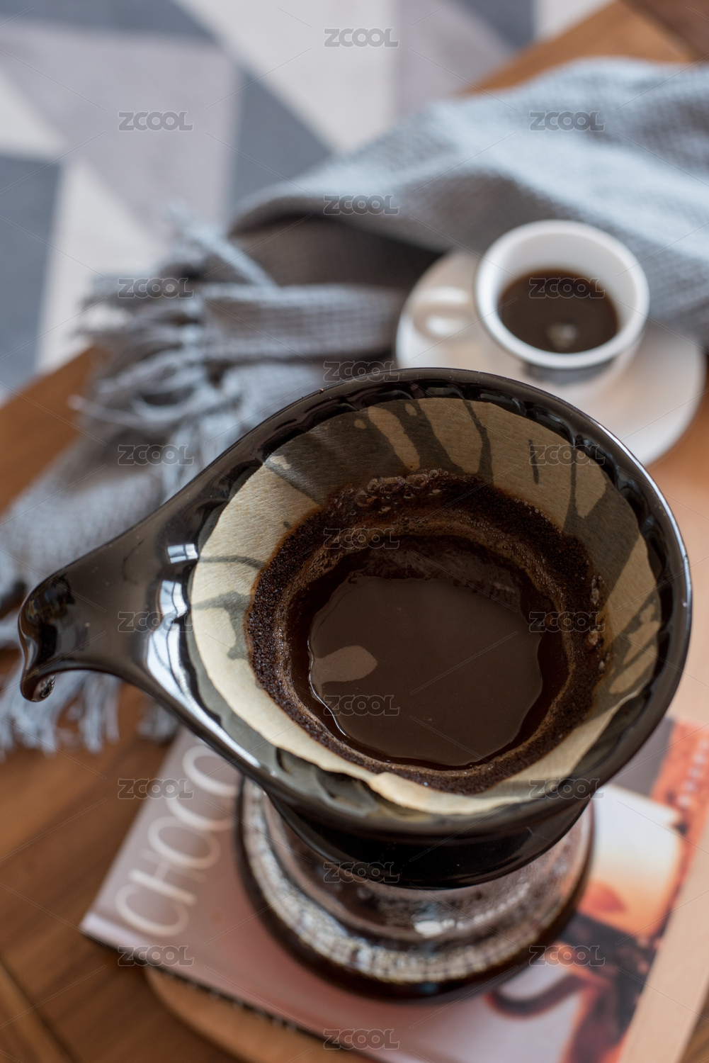 咖啡馆内手冲咖啡滤杯内萃取后的咖啡粉末
