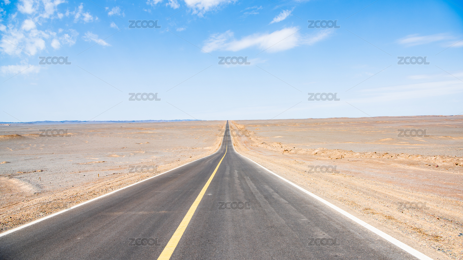 蓝天白云下的中国青海柴达木盆地荒漠中公路