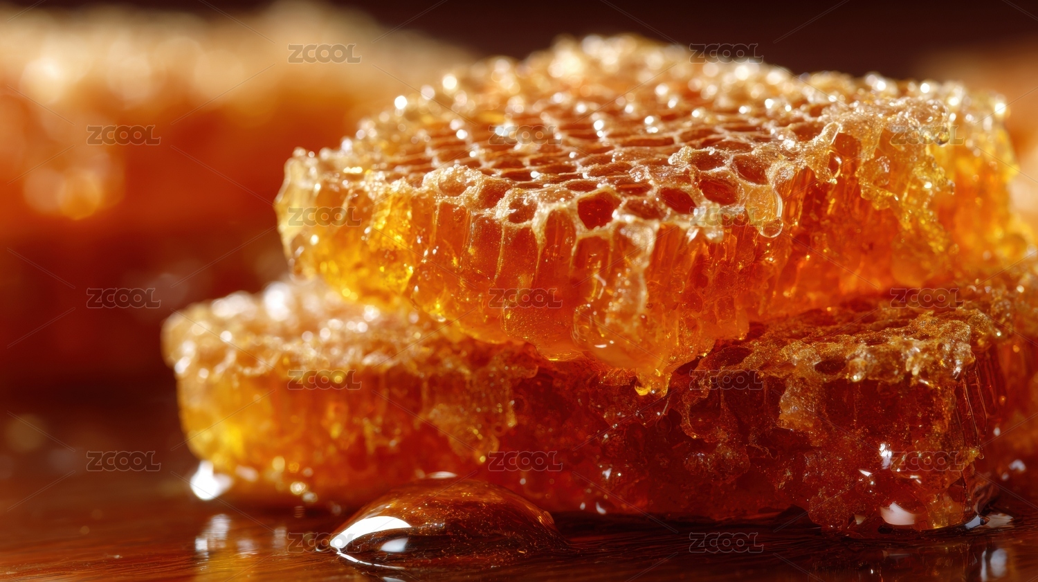 蜂蜜蜂巢特写金黄色光泽诱人