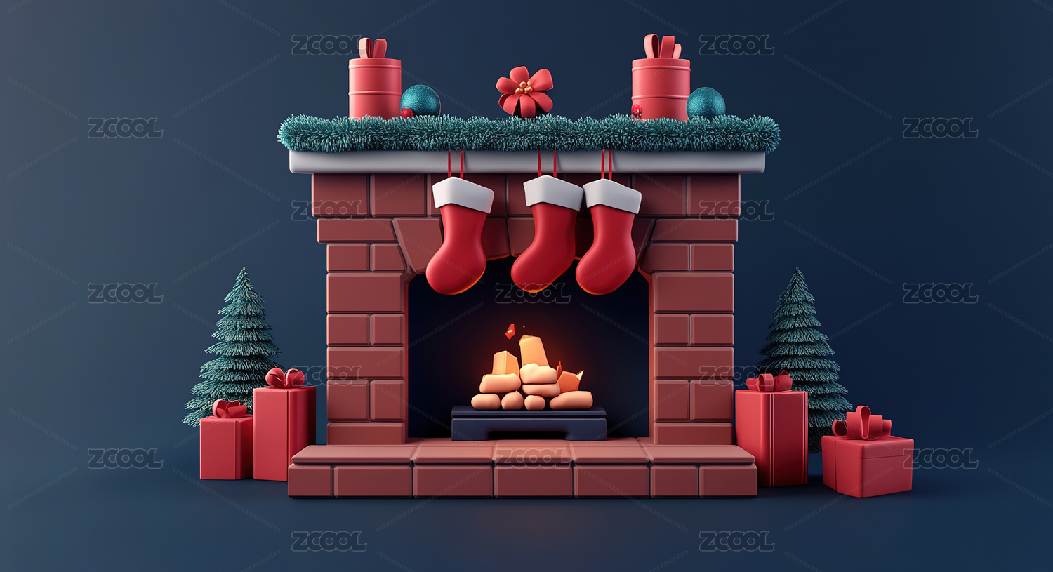 装饰,圣诞节,可爱风,节日,传统,背景,壁炉,插图,冬季,房子