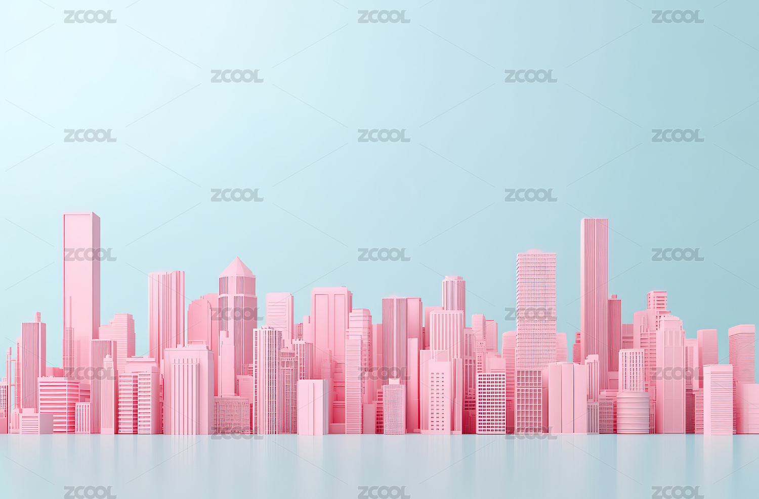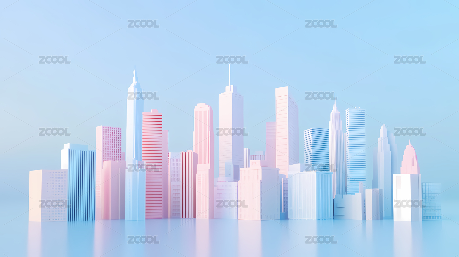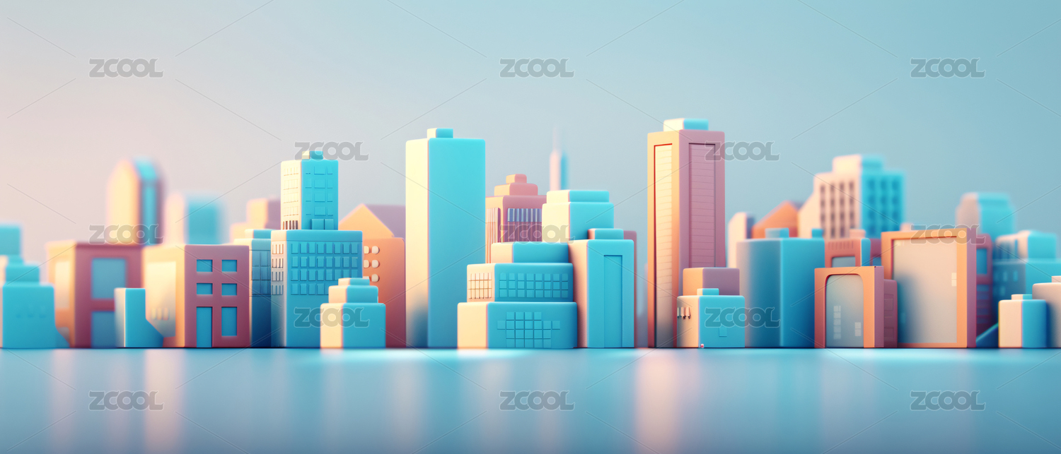 3D,卡通,梦幻,彩色,城市,建筑,天际线,现代,未来,创意