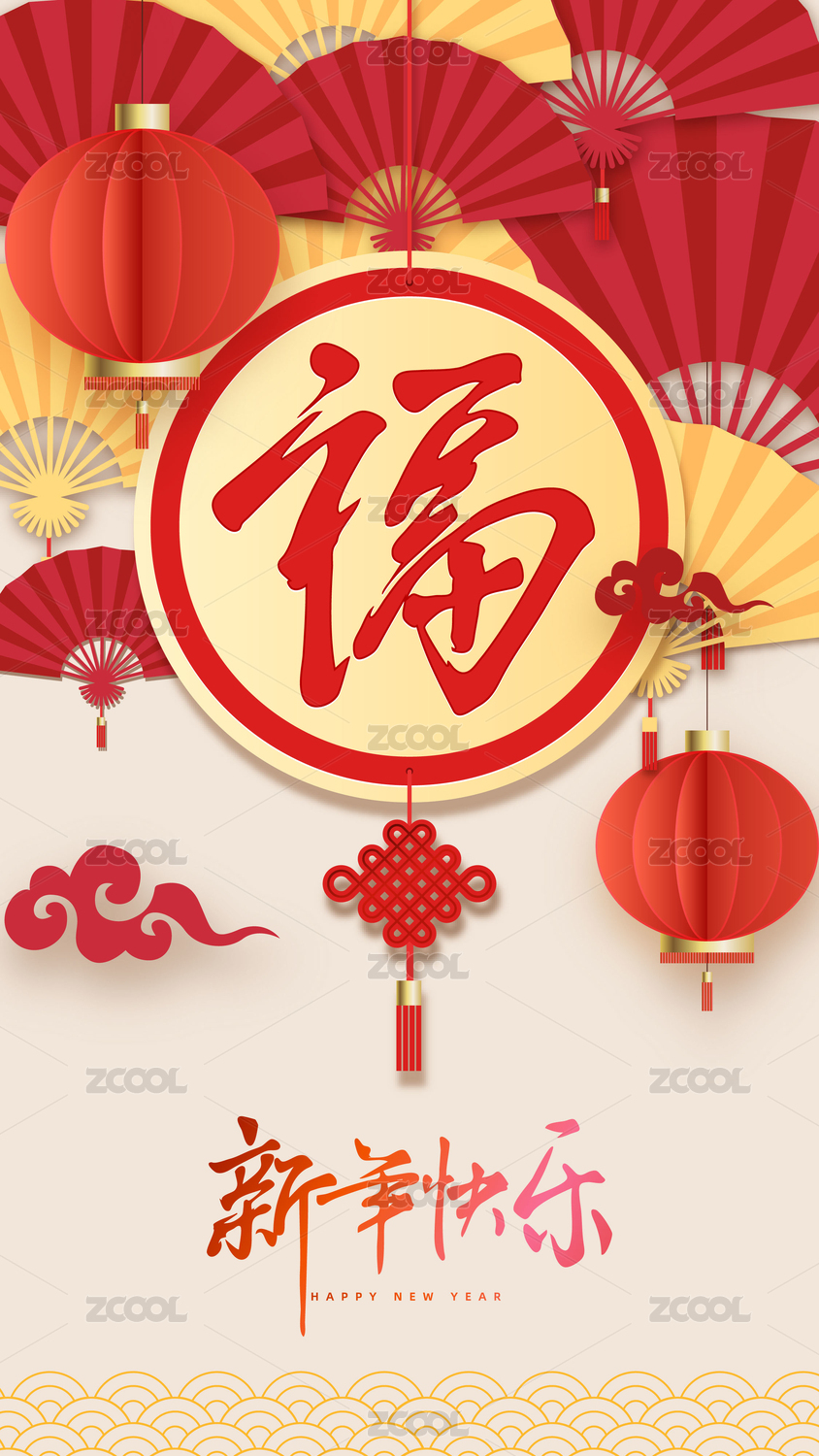 福,中国传统新春佳节,新春快乐,灯笼背景图