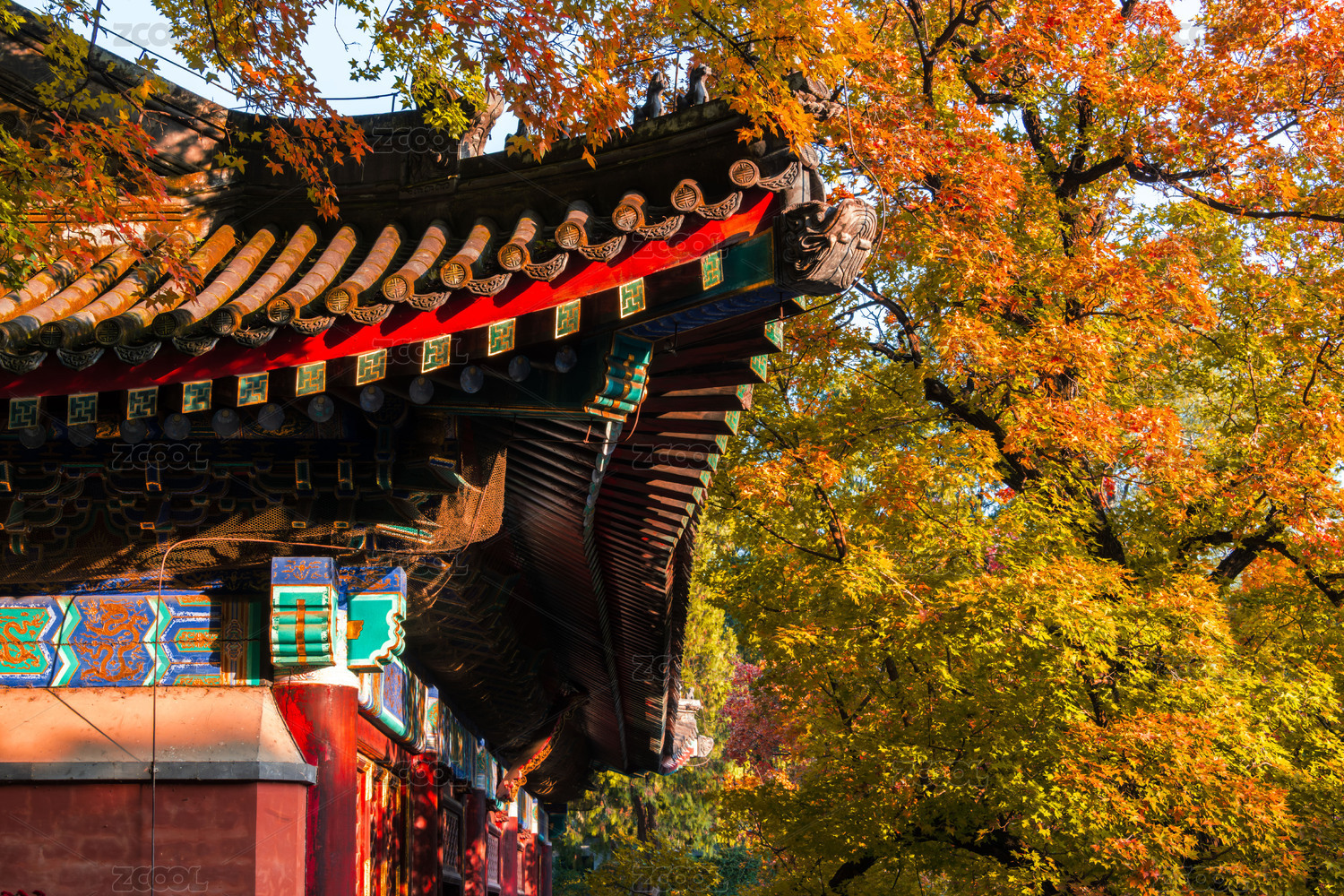 北京中山公园银杏叶屋檐