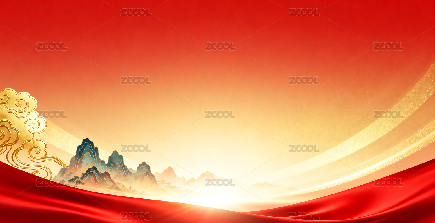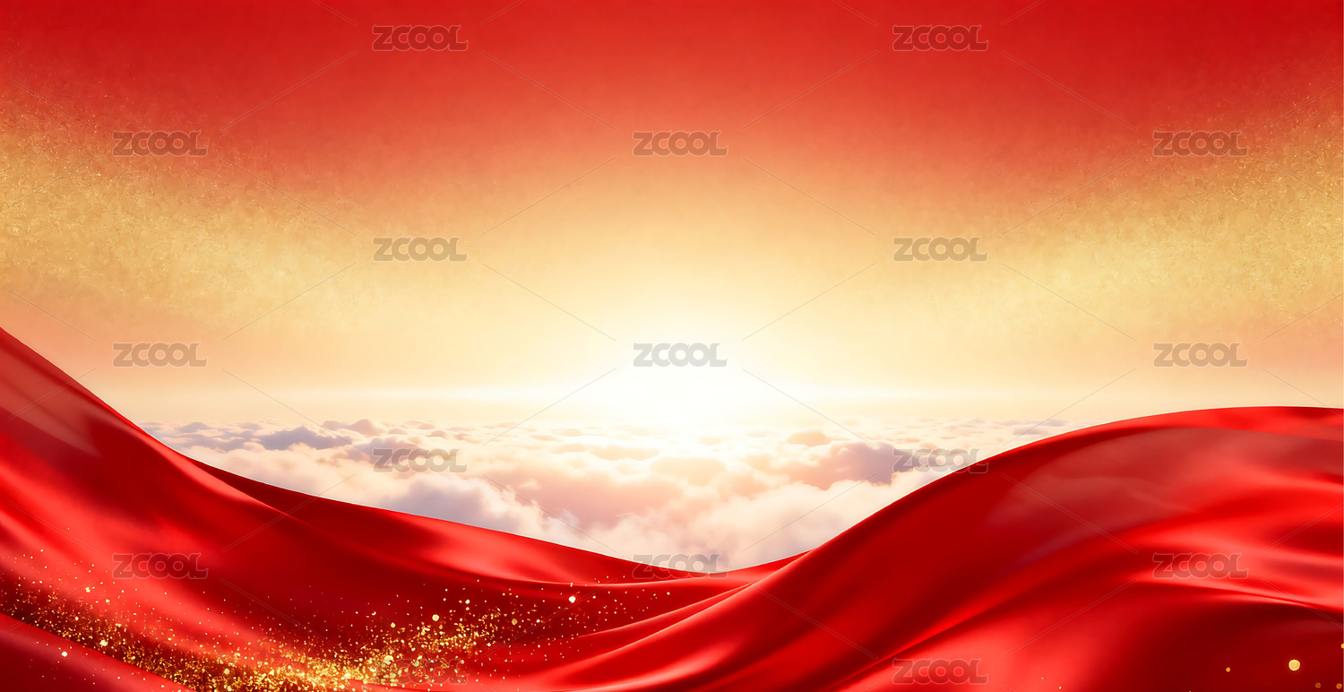 红色商务庆典丝绸绸缎金色光效主视觉背景