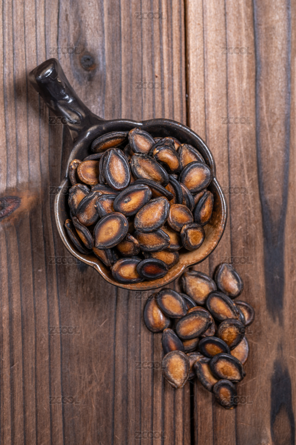 木纹桌上的炒货黑瓜子