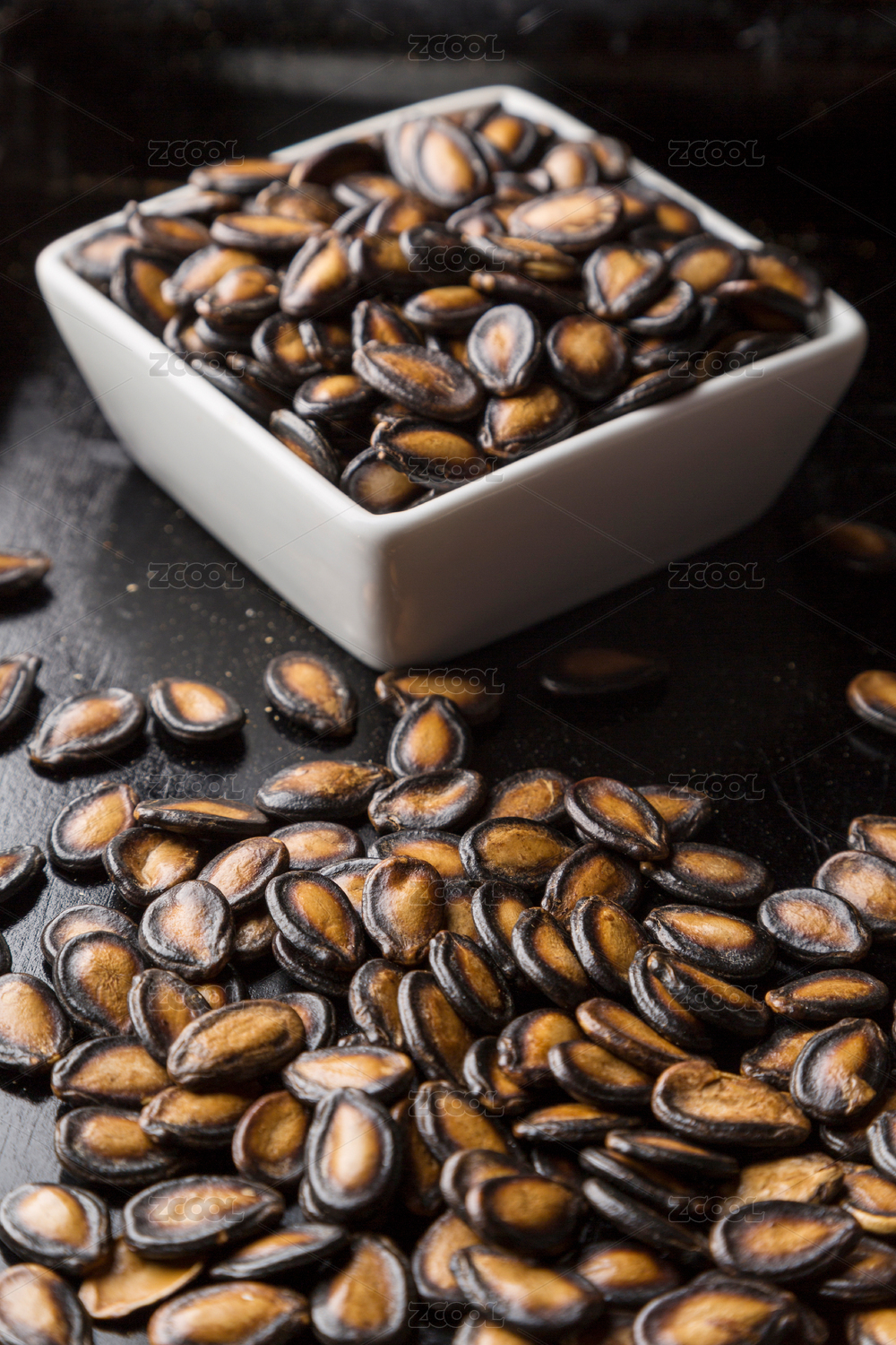 白瓷小碟里的西瓜籽休闲零食