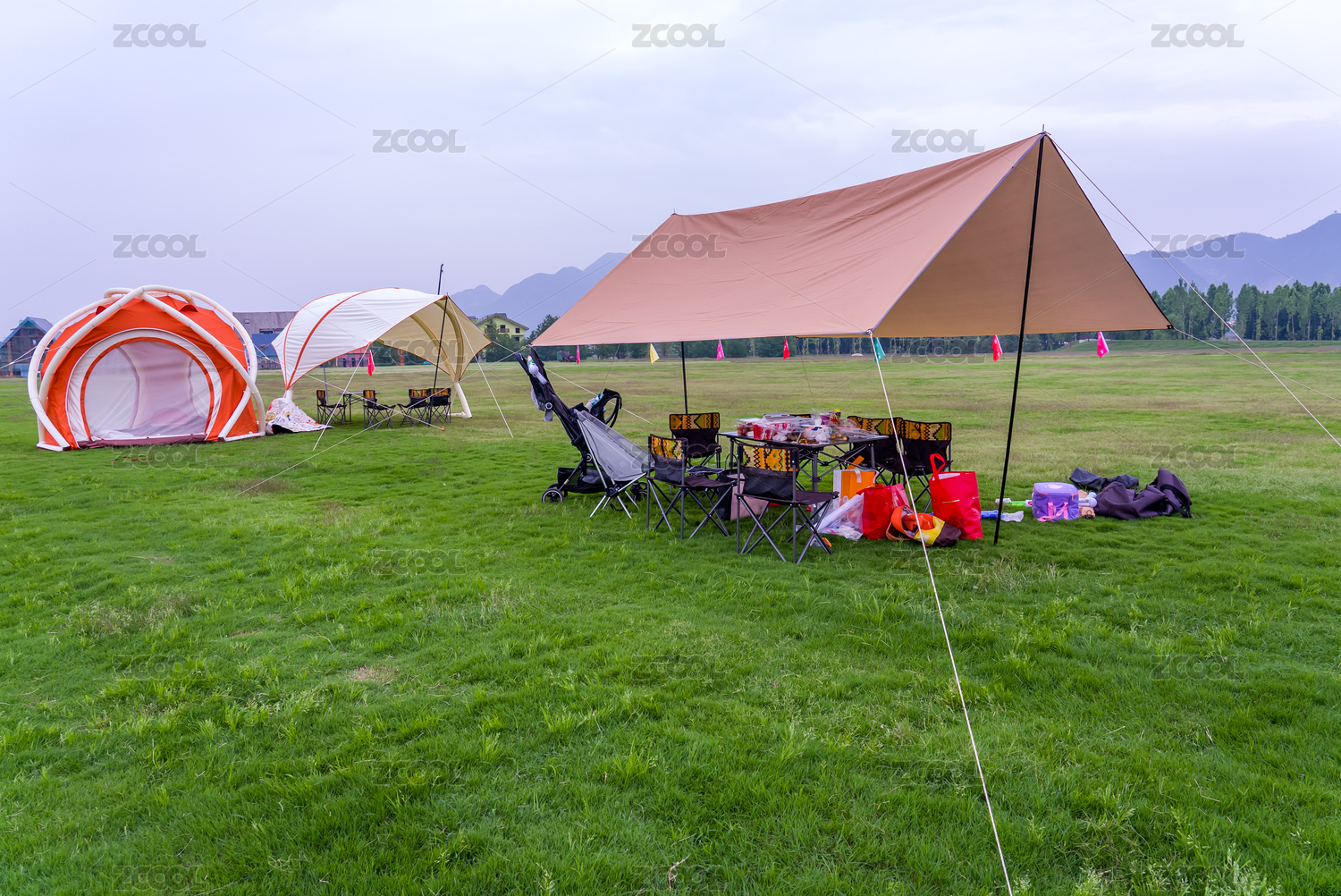 广州南沙蒲洲花园草坪草地户外露营帐篷