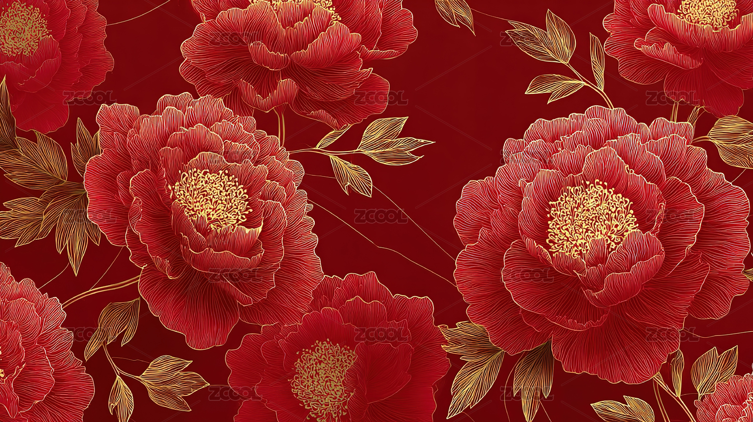 红色中国风牡丹背景