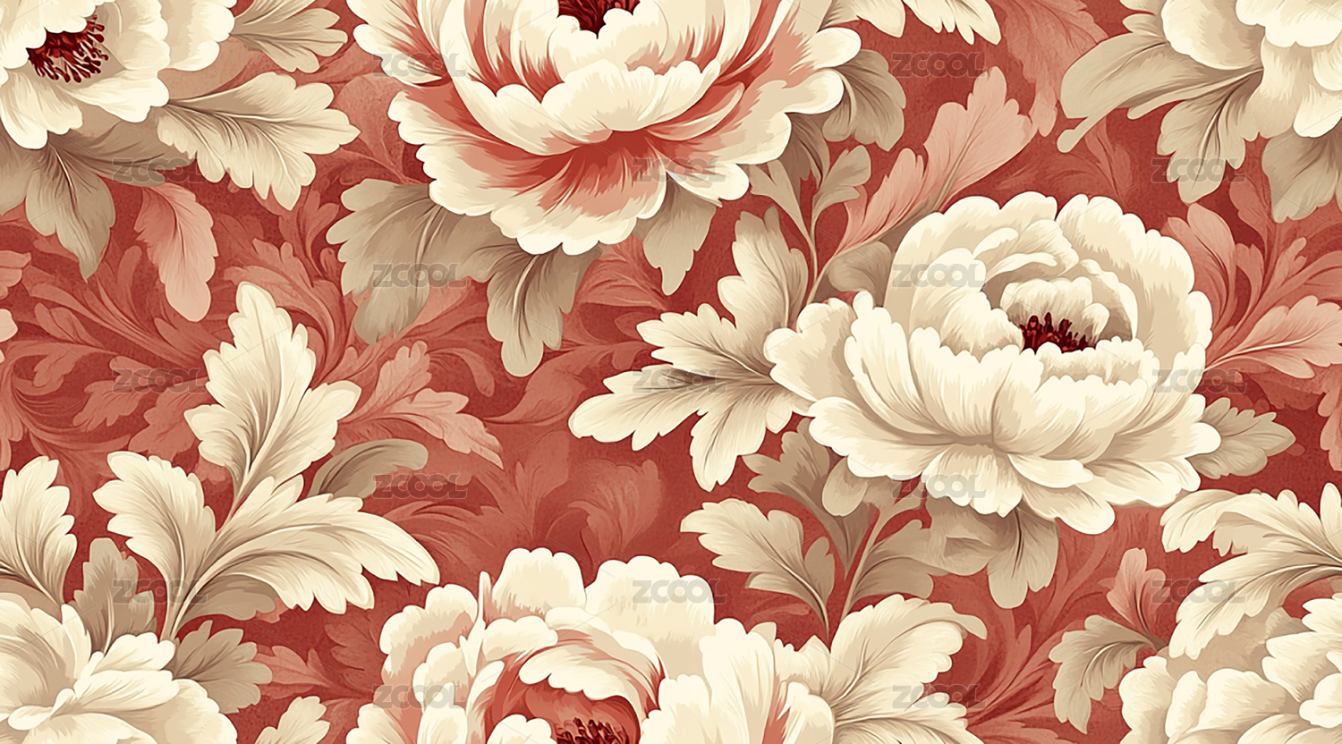 优雅的红白牡丹花纹