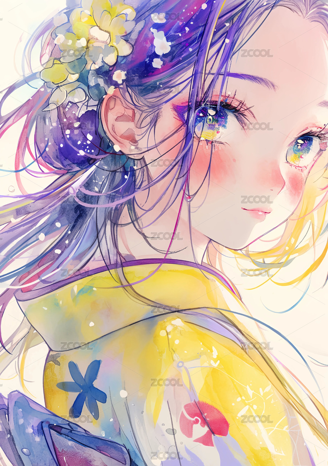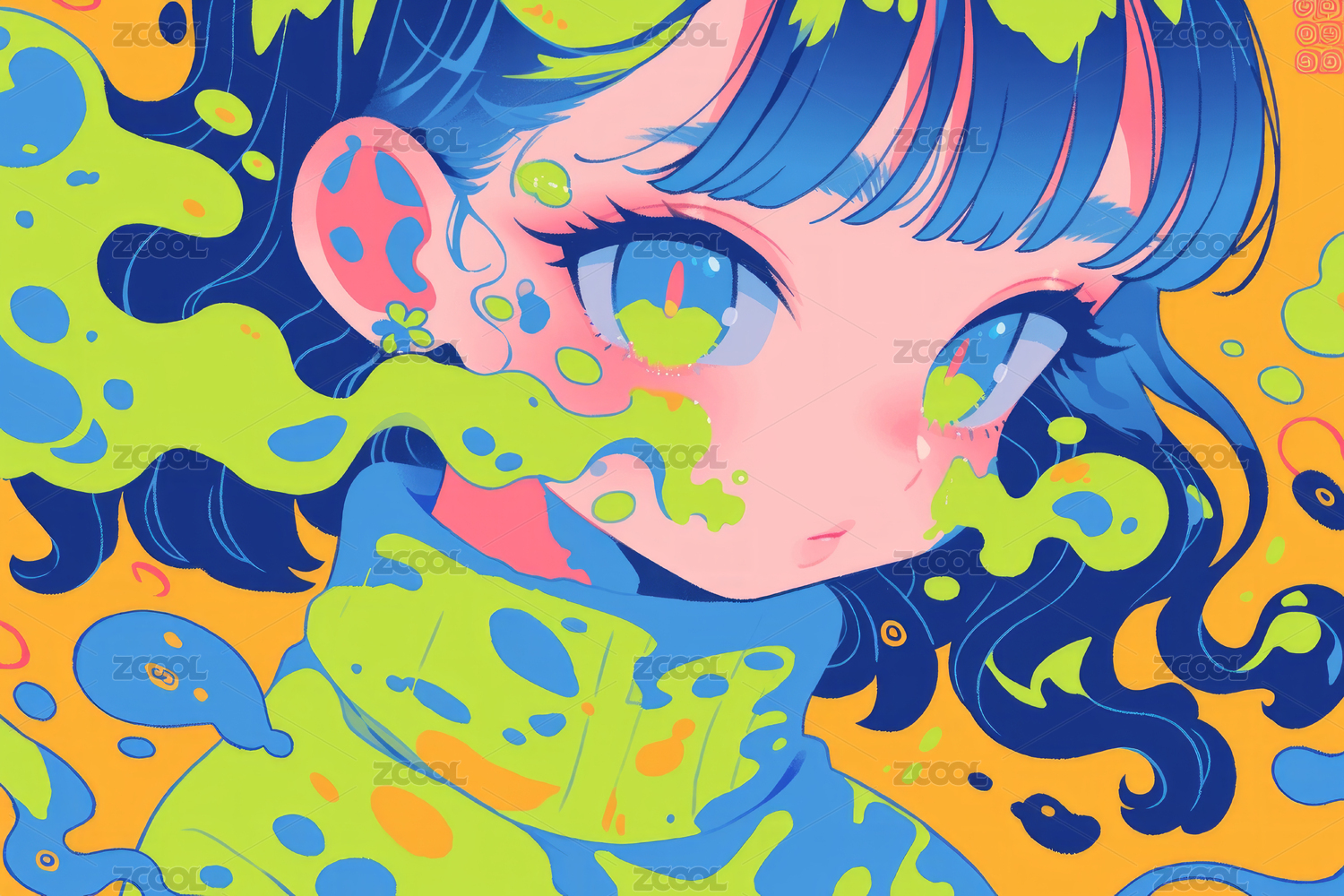 多巴胺配色多彩溅漆中的卡通人物肖像