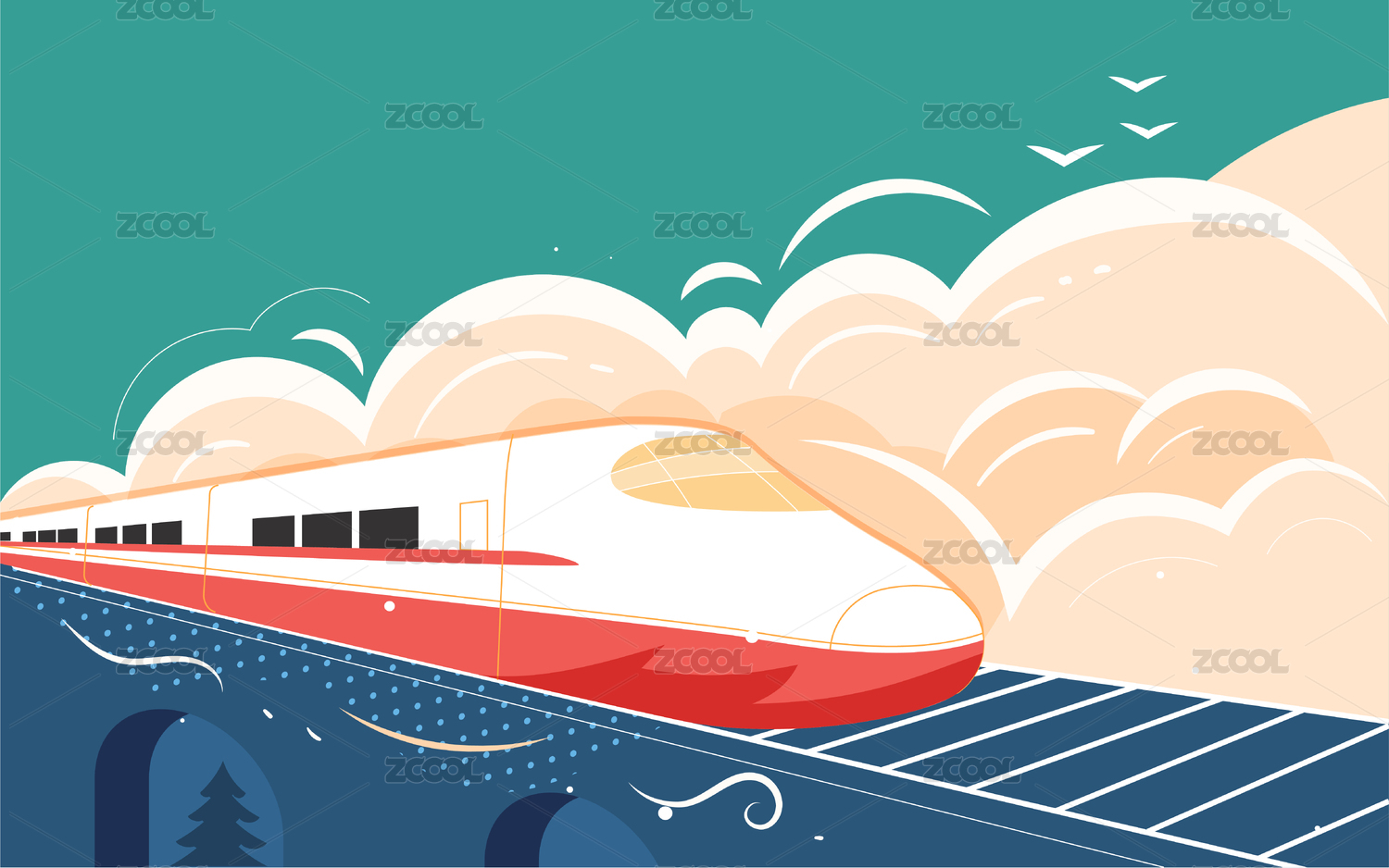 高铁运行概念插画