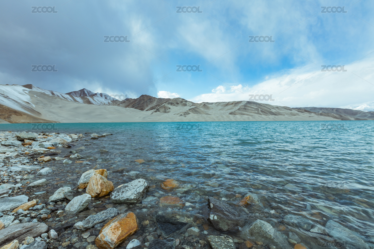 中国新疆帕米尔高原白沙湖白沙山美丽晴天风景